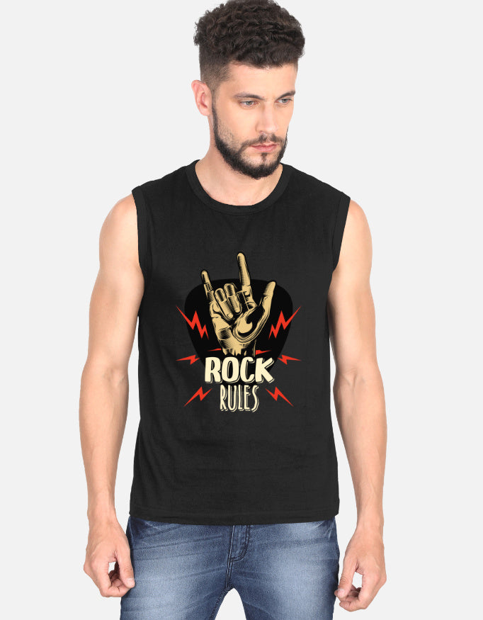 Men's Sleeveless T-Shirt: Rock Rules
