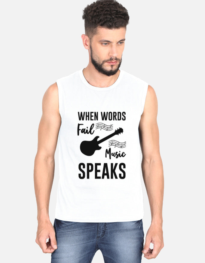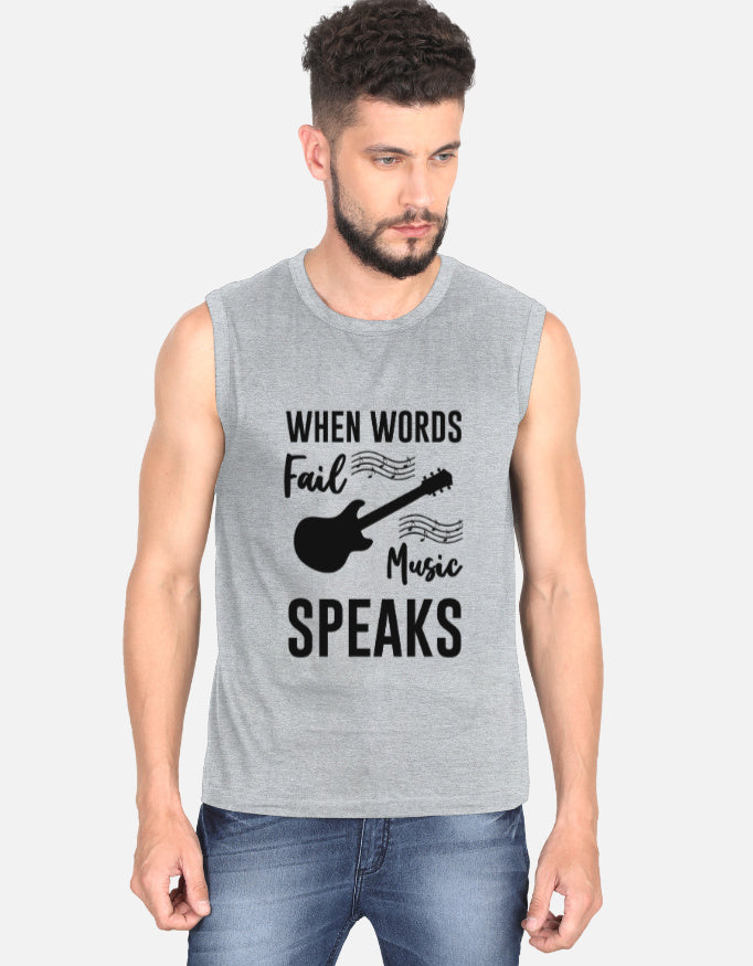 Men's Sleeveless T‑Shirt: When Words Fail, Music Speaks