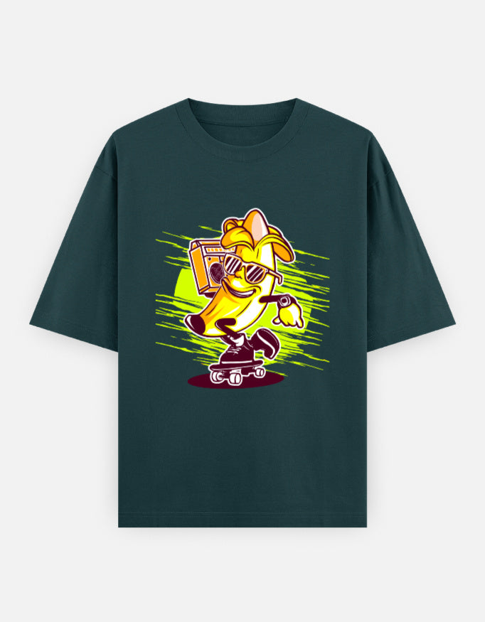 Bring playful energy with a neon‑streaked, boombox‑toting banana skater on deep forest green. Heavyweight 240 GSM cotton gives a premium drape, while the drop‑shoulder oversized cut adds relaxed style and extra room to move. Perfect for street sessions, festivals, or weekend fun.